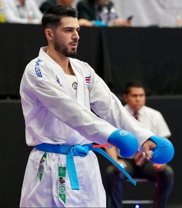 Wersja z haftem w kolorze czerwonym i niebieskim . Kimona z haftem są obowiązkowe na zawodach WKF: Series A, PL, MŚ, ME, Youth League oraz dopuszczalne na każdych innych turniejach.